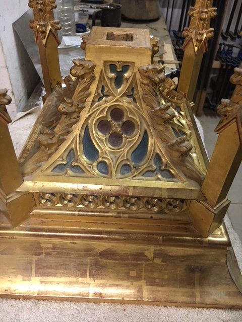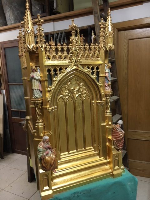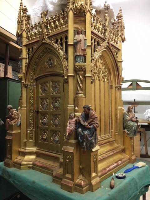Sagrario acabat amb pa d’or i figures tallades policromades: