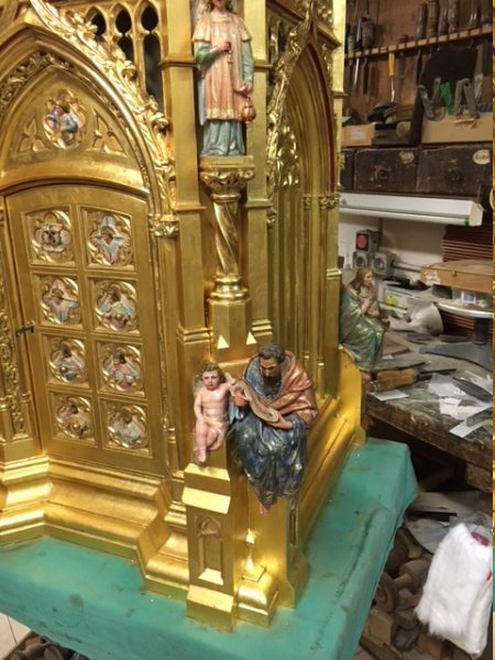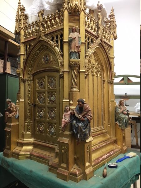 Sagrario acabado con pan de oro y tallas policromadas: